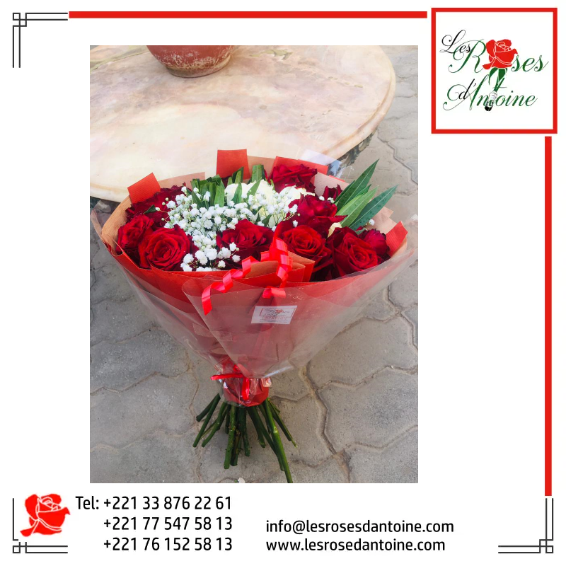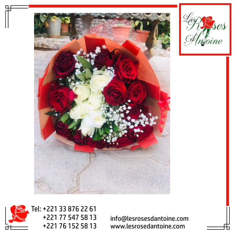 roses rouge blanche gypsophile