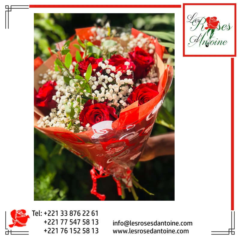 roses rouge et gypsophiles
